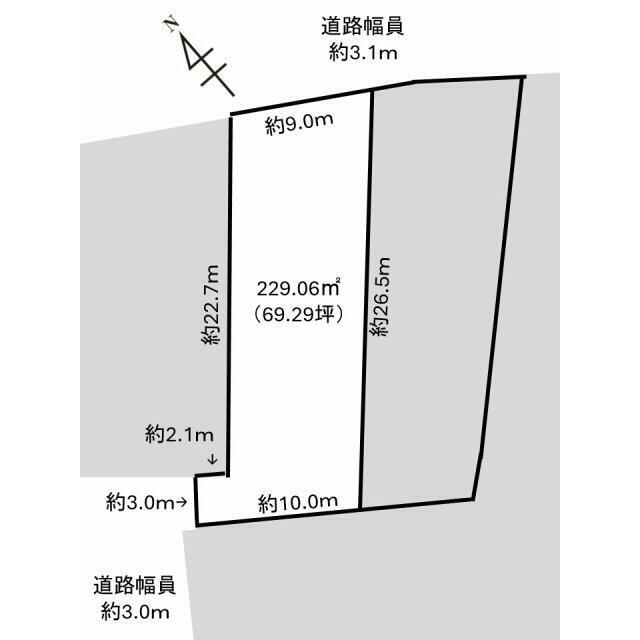 | 接道状況 | 北3.1m 公道 接面9.0m 西3.0m 接面3.0m | 地目 | 宅地 |